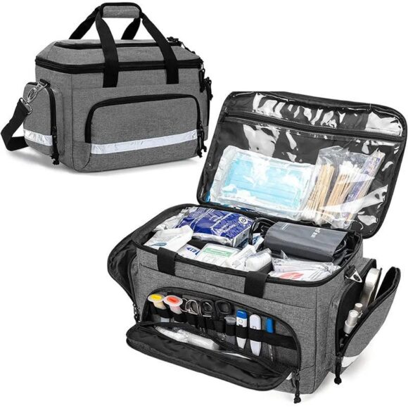 This Advanced First Aid Kit Bag is expertly designed for medical professionals and emergency responders. Featuring multiple compartments and pockets, it allows for organized storage of a wide range of medical supplies such as bandages, gauze, antiseptics, scissors, and other essential tools. Constructed from high-quality, water-resistant materials, the bag ensures durability and reliability in various environments. Its compact, portable design, paired with adjustable shoulder straps, provides easy transport during critical situations. Ideal for delivering immediate medical aid in the field, at events, or in any urgent scenario requiring swift medical response.