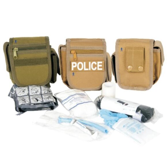 This tactical first aid kit pouch is an essential item for first responders, law enforcement officers, and outdoor enthusiasts. The kit includes three durable pouches in different colors, with one specifically labeled for police use. Each pouch is equipped with a sturdy zipper closure and multiple compartments for organized storage. The kit contains various medical supplies such as bandages, gauze, adhesive tape, a tourniquet, a CPR face shield, and gloves. The pouches can be easily attached to belts, bags, or tactical vests, ensuring quick access during emergencies. Made from high-quality, water-resistant materials, these pouches are built to withstand harsh conditions, making them ideal for field use and ensuring you are prepared for any situation.